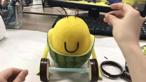 Về đến công ty, Tiểu Dã bắt đầu tút tát các em dưa hấu. Nào là làm dưa hấu xiên que, thạch dưa hấu rồi cả biến một trái dưa hấu vàng thành một bé minion vô cùng dễ thương nữa cơ. Fan hâm mộ của cô nàng lại được một phen á ố khi không chỉ nấu ăn ngon, Tiểu Dã còn rất khéo léo trong việc tỉa, khắc đồ ăn. Tỉa hoa này, tỉa rồng phượng lên vỏ dưa hấu này... điều gì Tiểu Dã cũng "cân" được tất.