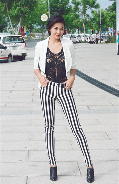 Không chỉ những thiết kế nhẹ nhàng, nữ tính, những thiết kế khỏe khoắn cũng được cô ứng dụng chất liệu xuyên thấu tinh tế.