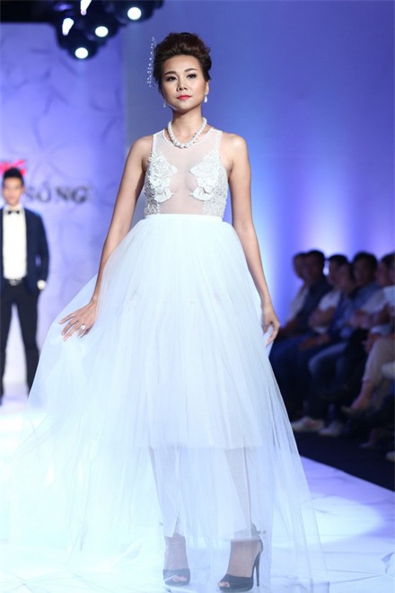Với đôi chân dài 1m12, cô được tin tưởng đảm nhận vai trò vedette trong nhiều sàn diễn thời trang. Thiết kế xuyên thấu khoe tối đa đôi chân thon gọn đẹp ngẩn ngơ của Thanh Hằng.