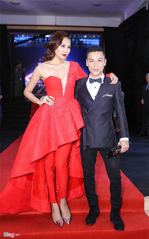 Biên tập viên thời trang Thanh Trúc đồng hành cùng nhà thiết kế Lâm Gia Khang trên thảm đỏ.
