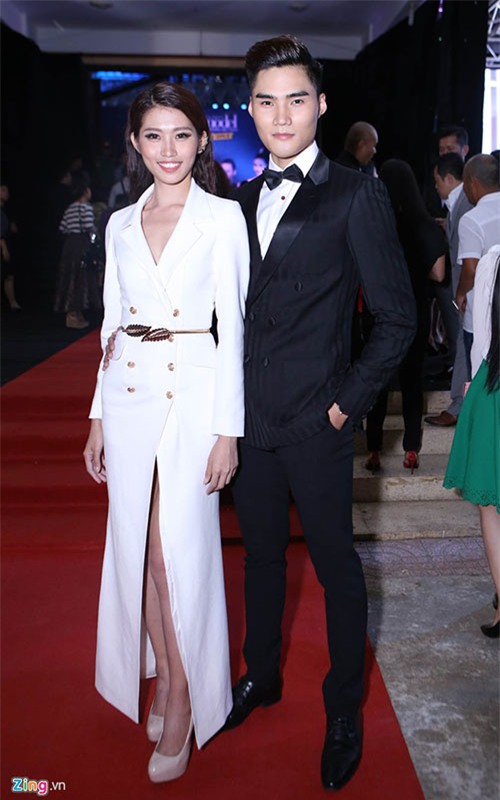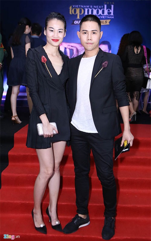 Đồng quán quân mùa trước, người mẫu Quang Hùng, đến dự đêm chung kết cùng bạn gái Quỳnh Châu.