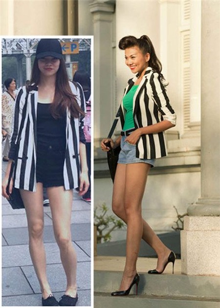 Một số hình ảnh so sánh nét tương đồng trong việc phối đồ giữa 2 cô nàng xinh đẹp.