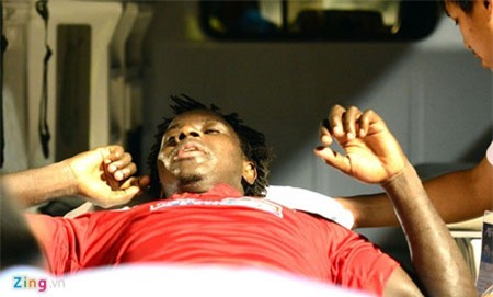 Abass gần như bất tỉnh khi được đưa lên xe cấp cứu. Ảnh: Nguyễn Quang. |