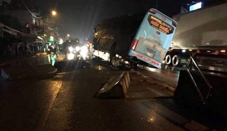 Vào thời điểm trên, khi xe khách giường nằm mang BKS 76B-009.88 do tài xế Đào Đức Tiến (SN 1988, trú TP Quảng Ngãi, tỉnh Quảng Ngãi) điều khiển lưu thông trên QL 1A theo hướng Nam-Bắc, đến đoạn đường trên thì mất lái húc văng nhiều tấm bê tông rồi leo thẳng lên dải phân cách và xe nghiêng về 1 phía khiến khoảng 40 hành khách (người lớn, trẻ nhỏ) hoảng loạn.