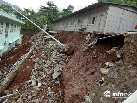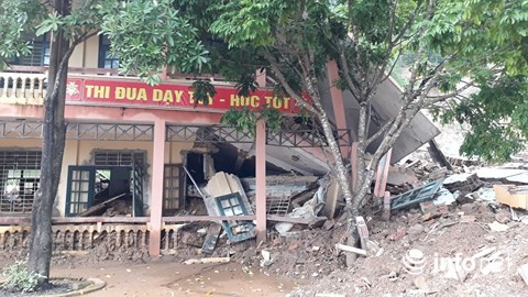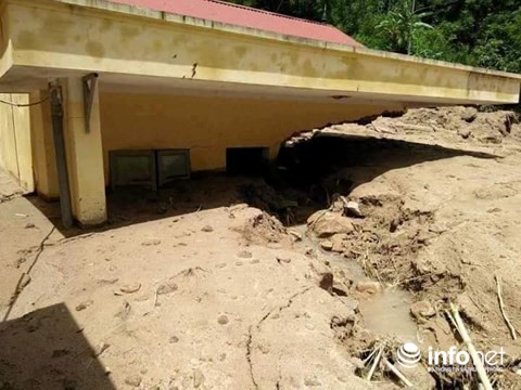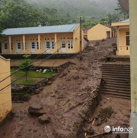 Ảnh hưởng của mưa lũ khiến nhiều điểm trường ở các huyện miền Tây Thanh Hóa bị sạt lở, hàng nghìn khối đất đá đổ xuống trường, một số lớp học bị vùi lấp hoàn toàn.