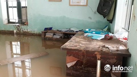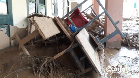 Trường học ngập ngụa trong bùn đất, bàn ghế thì ngổn ngang. Đứng trước nguy cơ thiếu phòng học trước ngày Khai giảng năm học mới.