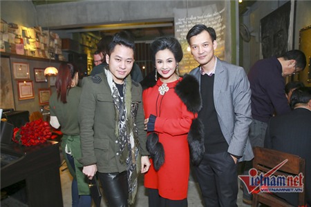 Ca sĩ Thanh Lam cùng em trai và ca sĩ Tùng Dương trong buổi khai trương quán cà phê. |