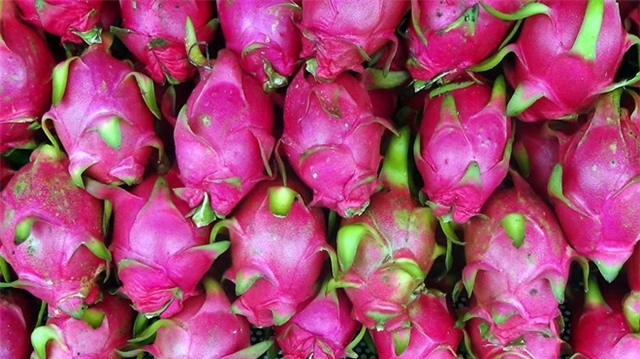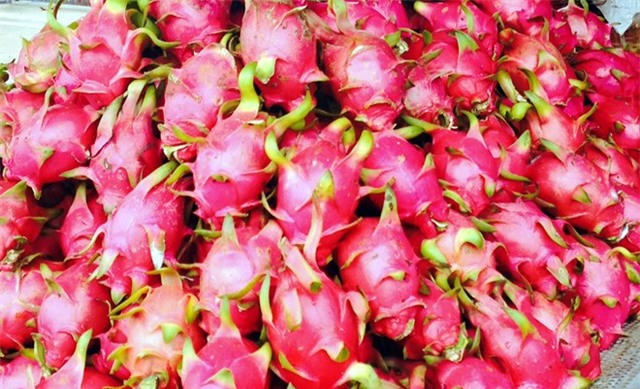 Thanh long ruột tím hồng cũng xuống phố với giá 5.000 đồng/kg trước đây là 30.000 đồng/kg