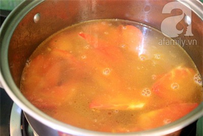 ![]() | ![]() Cho 2 thìa dầu ăn vào nồi, cho phần hành khô còn lại vào xào thơm, tiếp đó cho cà chua vào đảo cho chín mềm, bạn nêm thêm ít hạt nêm, muối bột canh. Thêm nước luộc ốc, nước cơm mẻ và lượng nước vừa ăn vào đun sôi. |