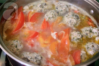 ![]() | ![]() Khi nước sôi cho từng viên thịt ốc vào đun, đun cho đến khi thịt nổi lên trên là đã chín. Bạn thêm ớt thái lát vào và nêm nếm lại gia vị cho vừa ăn, thêm hành lá và thì là vào, rồi tắt bếp. |