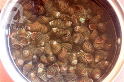 ![]() | ![]() Ốc mua về rửa sạch bùn đất, ngâm ốc nửa ngày cho ốc nhả hết cặn bẩn (nếu bạn muốn ăn ngay thì ngâm ốc với một ít muối hạt pha loãng). Sau đó rửa sạch lại ốc. |