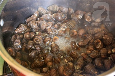 ![]() Cho ốc vào nồi với lượng nước xâm xấp mặt ốc. Luộc ốc cho đến khi vảy ốc rời ra thì tắt bếp (khoảng 10 phút). Bạn múc ốc ra rổ, phần nước luộc ốc bạn gạt lấy nước trong cho ra bát. |