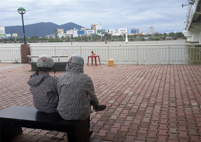 Chiều cùng ngày, người thân của anh Khánh vẫn ngồi ở chân cầu sông Hàn để ngóng tin tìm kiếm nạn nhân. Ảnh: Đắc Đức. |
