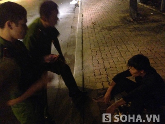 Tối 27/9, trong lúc Hùng đang tiếp xúc với chúng tôi, một tổ công tác của Công an phường Hoàng Liệt, quận Hoàng Mai đi tuần tra đã đứng lại tiếp cận thanh niên hoại tử chân để kiểm tra thông tin.