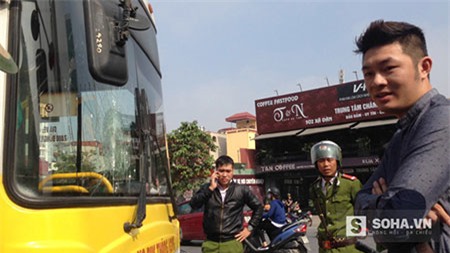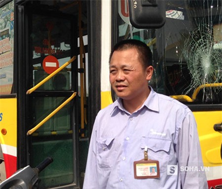 Tiếp xúc PV tại hiện trường, tài xế và phụ xe buýt cho biết: “Tôi không hiểu sự việc gì, tôi khẳng định không có va chạm mà tại sao thanh niên này lại cầm mũ bảo hiểm đập vỡ kính xe…”.