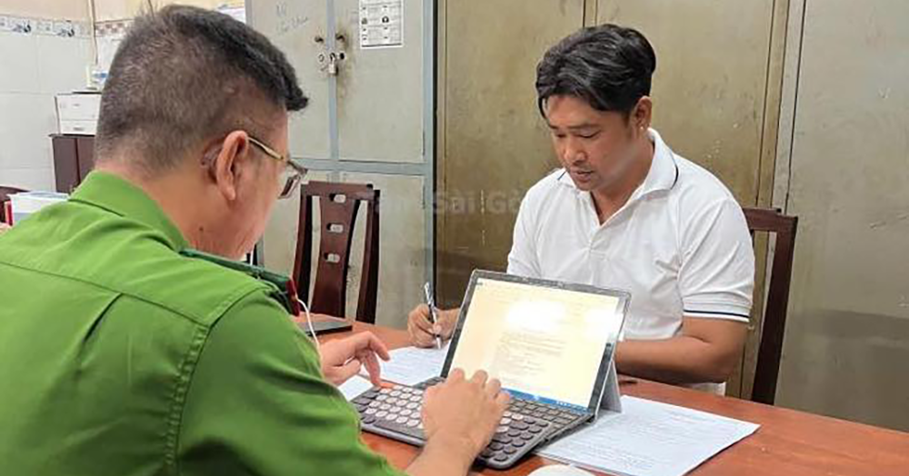 Công an phường An Khánh, TP Thủ Đức (TPHCM) đang lấy lời khai của nam thanh niên trên để điều tra, làm rõ và xử lý theo quy định.