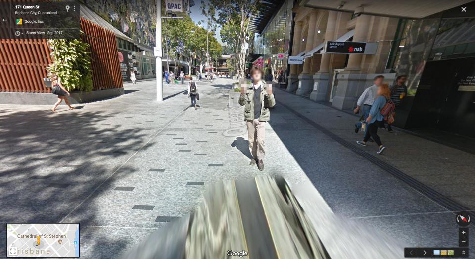 Phát hiện mang đầy tính chất khác người này được một thành viên trên diễn đàn Reddit tìm ra vài ngày trước, trong khi đang khám phá tính năng xem bản đồ đường phố từ ảnh chụp Google Maps ở Brisbane, Australia. Được biết, những tấm ảnh này thường được xe tự động của Google đi theo một lộ trình cài đặt sẵn, với camera góc rộng chụp lại các góc cạnh phong cảnh xung quanh để xác định vị trí định vị.