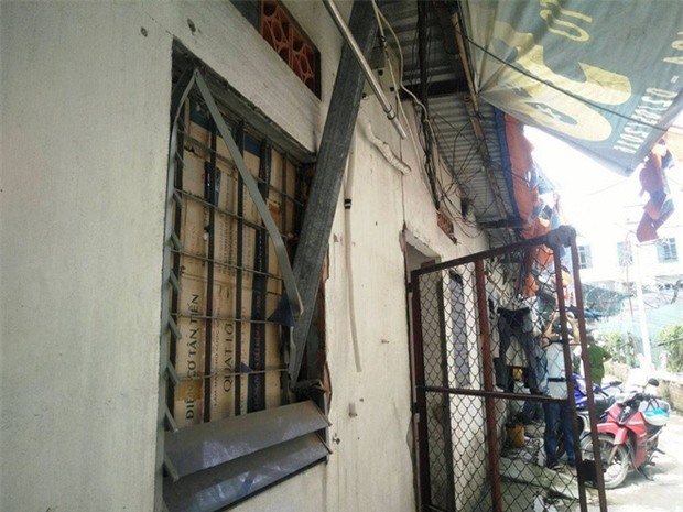 Quá hoảng sợ vì không biết chuyện gì xảy ra, chị Huyền vội ôm con bỏ chạy ra ngoài phòng trọ. Sau khi định thần, chị Huyền phát hiện một thanh sắt ống hình vuông dài khoảng 10m của công trình xây dựng kế bên dãy phòng trọ rơi từ trên cao đâm thẳng vào phòng mình.