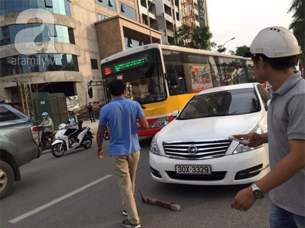 Theo đó, vào khoảng 17h 30 phút chiều nay, trong lúc một chiếc xe ô tô màu trắng đang di chuyển trên đường Lê Đức Thọ (phường Mỹ Đình 2, quận Nam Từ Liêm, TP. Hà Nội) đã bất ngờ bị một thanh sắt dài khoảng 50 cm rơi trúng nóc xe.