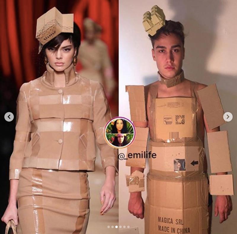 Một thiết kế nữa của Gigi trở thành nguồn cảm hứng cho anh chàng đình đám mạng xã hội này, thiết kế mới nhất của H&M x Moschino được anh tái chế lại bằng những chiếc đĩa CD cũ, rất đúng tinh thần của bản gốc.