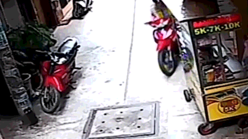 Đúng lúc đó, người chủ nhà đi ra cửa, nhìn thấy đã vội lao theo để ngăn cản. Tên cướp bị ngã xuống và vứt xe lại, bỏ chạy.