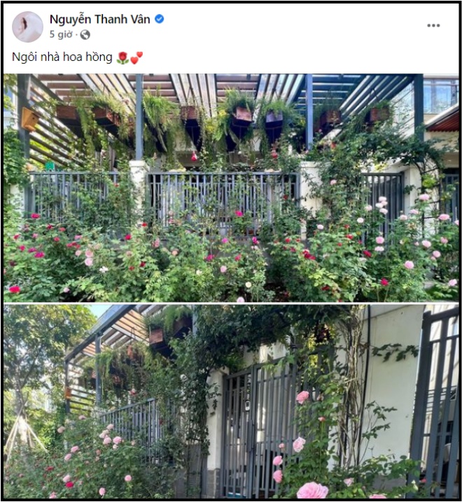 Mới đây, nữ MC còn vui vẻ khoe thành quả là những bụi hoa hồng của mình bên ngoài cửa nhà.