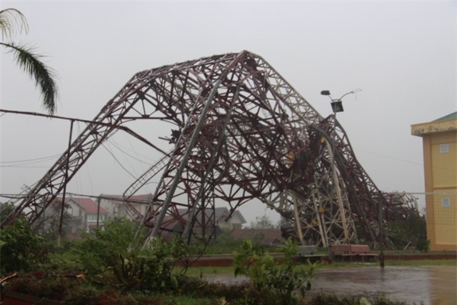 Với sức gió mạnh giật cấp 14, cấp 15, cơn bão được đánh giá là mạnh và nguy hiểm nhất trong vài năm trở lại đây, đã khiến tháp Đài Truyền hình thị xã Kỳ Anh (Hà Tĩnh) đổ sập hoàn toàn.