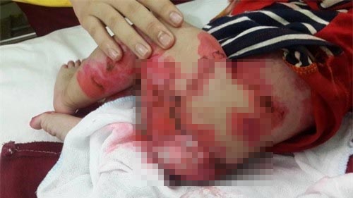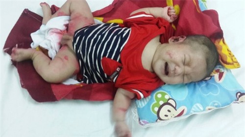 Bé gào khóc trong đau đớn |