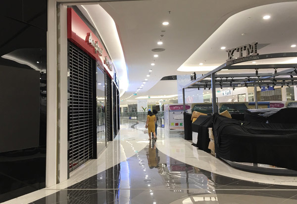 Tại Aeon Mall Hà Đông, nhiều gian hàng đóng cửa im lìm