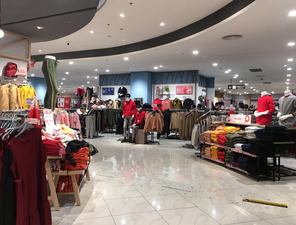 Ghi nhận của PV, tại nhiều khu, các kệ hàng còn lưa thưa, nhiều chỗ phủ bạt, công tác thi công vẫn đang gấp rút hoàn thiện. Đối với nhiều gian mỹ phẩm, đồ dùng trang thiết bị, thời trang chưa ghi nhận sự mua sắm mạnh mẽ. Lượng khách tham quan vẫn khá èo uột, thậm chí có nơi không có khách.