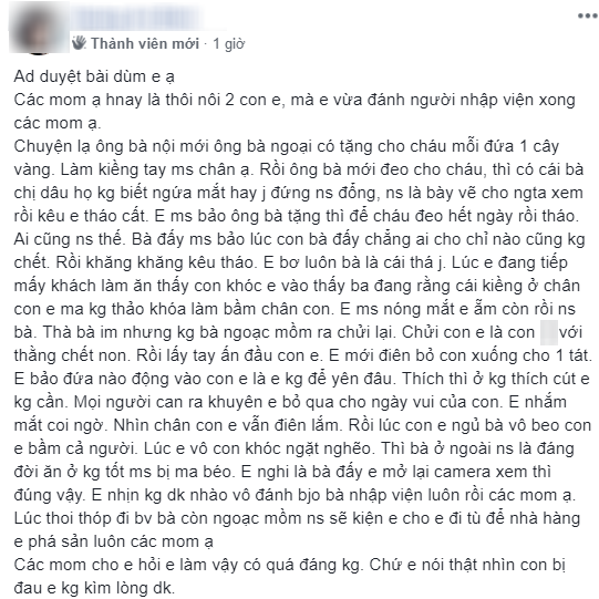 Người mẹ giận dữ kể lại: ''Các mom ạ, hôm nay là thôi nôi 2 con em, mà em vừa đánh người nhập viện xong các mom ạ.