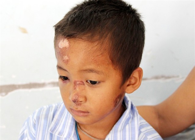 3/9 em học sinh bị nạn đang điều trị tại khoa Ngoại của Bệnh viện Giá Rai trưa 8/10. Ảnh: Việt Tường. |