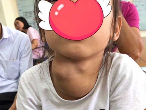 Bệnh nhân C.T.X (7 tuổi- dân tộc Nùng ở Chi Lăng- Lạng Sơn) nhập viện trong tình trạng khối u tuyến giáp khổng lồ mọc ở vùng cổ, giống với một cái bướu ở cổ cùng các biểu hiện lâm sàng như: Cảm giác căng tức ở vùng cổ, khó thở, khó nuốt, hay khàn tiếng.