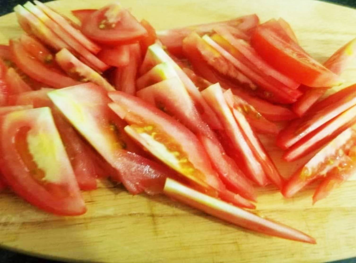 - Cà chua bạn rửa sạch và thái lát mỏng. Hành tím và tỏi bạn bóc vỏ rồi băm nhuyễn.