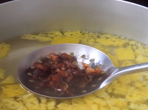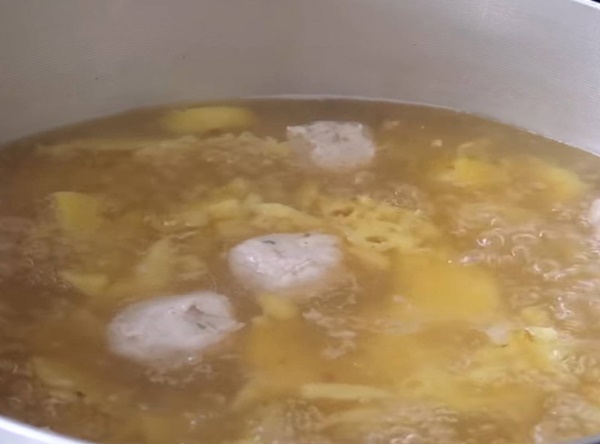 - Tiếp theo bạn cho 2 muỗng canh hạt nêm, 1 muỗng cà phê muối vào, khi nước sôi mạnh bạn vo tròn 1/2 phần cá thác lác đã ướp gia vị vào và nấu 5 phút.