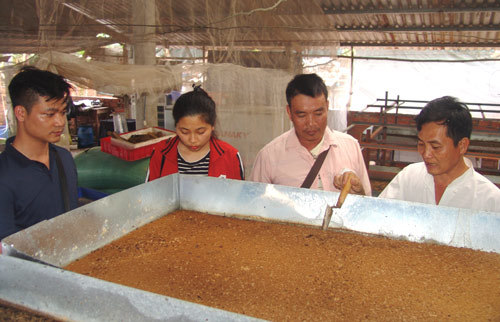 Sau những ngụm rượu ngâm ruồi lâng lâng, anh Bé đưa đoàn doanh nghiệp đi học nuôi… ruồi xuống khu cho ruồi lính đen đẻ trứng. Trong một khu đất rộng khoảng 1.000m2 anh Bé cất nhà, cho vây kín bằng tấm nhựa, rồi chia thành 2 khu: Khu đẻ trứng và nhân nhộng ruồi lính đen.
