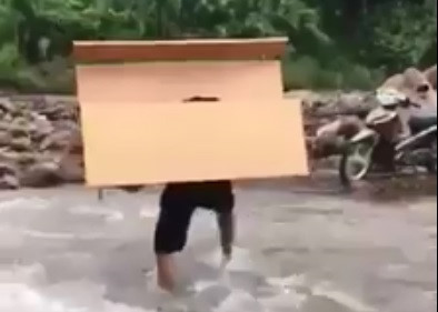 Hình ảnh thầy giáo cõng bàn qua suối được cộng đồng mạng lan tỏa. Ảnh cắt từ clip.