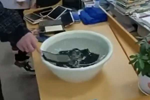 Sau khi giáo viên chủ nhiệm lớp phát hiện ra rất nhiều học sinh vi phạm nội quy, thầy đã tự thương lượng với phụ huynh, dùng biện pháp ngâm điện thoại di động vào nước và được đồng ý.