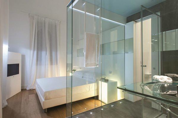 Trong không gian khép kín của một phòng khách sạn thì việc sử dụng vách kính sẽ tối ưu hơn rất nhiều so với tường gạch, giúp tiết kiệm diện tích tối đa. Thiết kế này mang lại cảm giác về một không gian tổng thể lớn hơn. Và hầu hết các phòng bên trong khách sạn đều tương đối nhỏ nên nếu dùng kính trong suốt sẽ tạo cảm giác không gian trong phòng rộng và thoáng hơn.