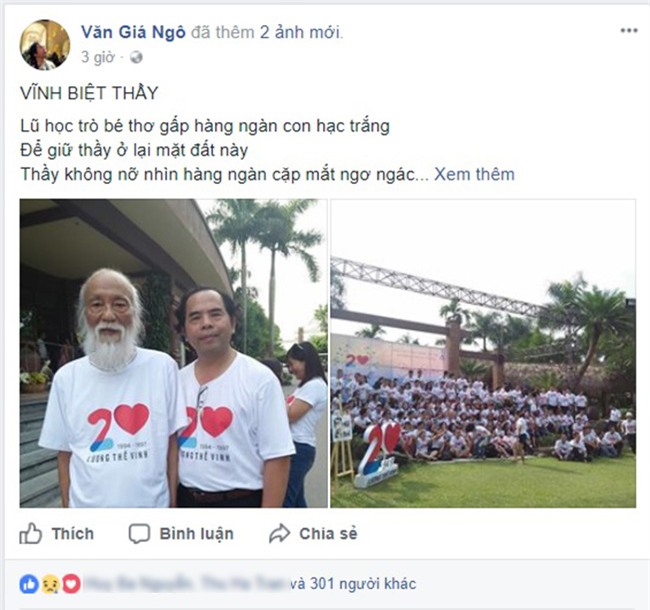 Hay tin người thầy đã gắn bó với gia đình mình suốt 20 năm qua đời, nhà phê bình Văn Giá (Trưởng khoa Viết văn - Báo chí, Đại học Văn hóa Hà Nội) đã viết những câu thơ đầy cảm xúc.