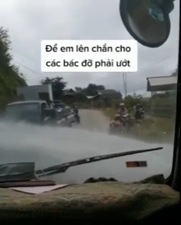 Tài xế chắn dòng nước lớn để người đi xe máy an toàn đi qua, nhận về cơn mưa lời khen