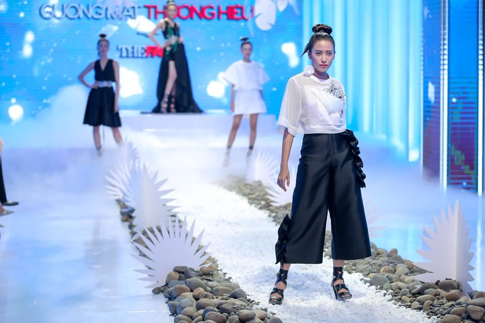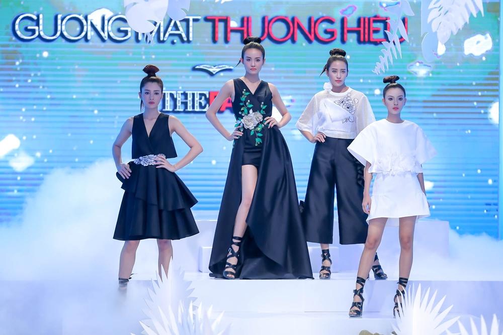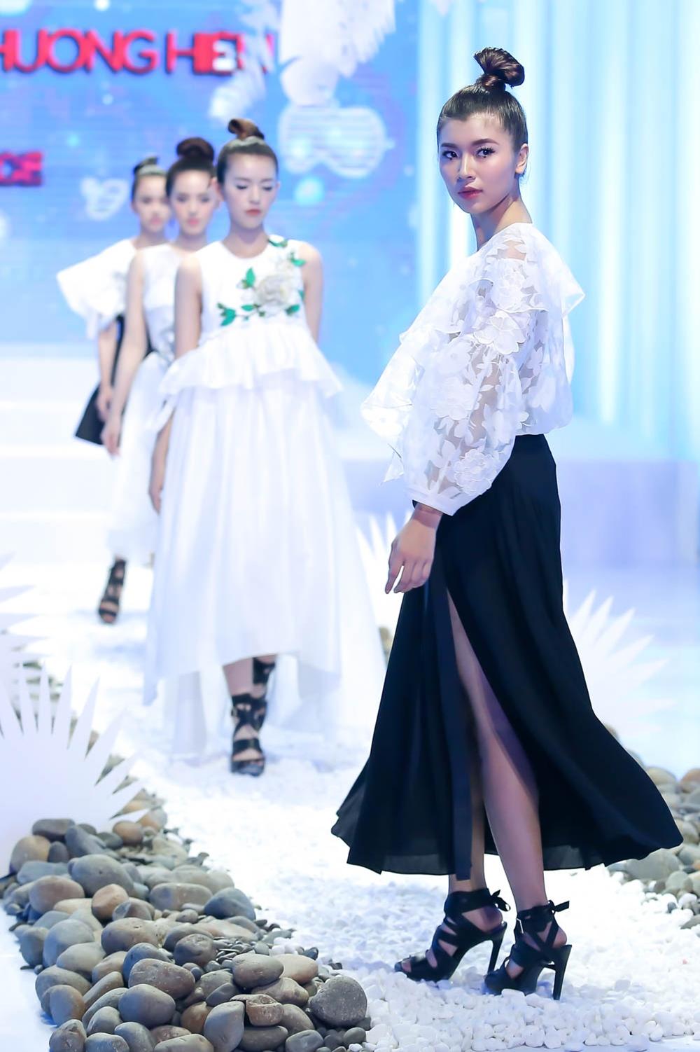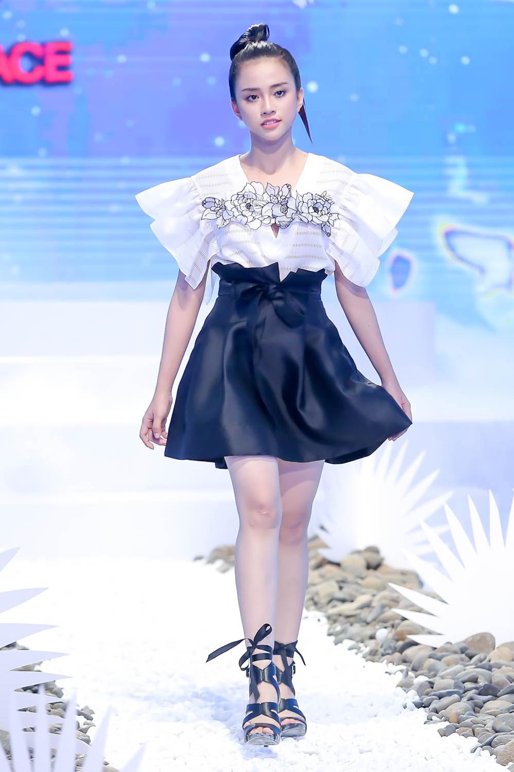 Đến lượt các cô gái đội Hoàng Thùy, thí sinh Tường Linh được đánh giá cao vì mang đúng tinh thần của bộ sưu tập nhẹ nhàng và bay bổng.