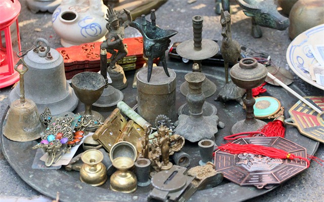 Những món đồ ở chợ đa dạng, nhiều chủng loại khác nhau, từ tượng Phật, đỉnh đồng, lư hương… đến các vật dụng bình dị trong cuộc sống hàng ngày như bát, đũa... |
