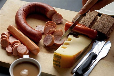 Xúc xích, pho mát địa phương, bánh mì và cà phê mạnh. Đó là bữa sáng của người Đức.