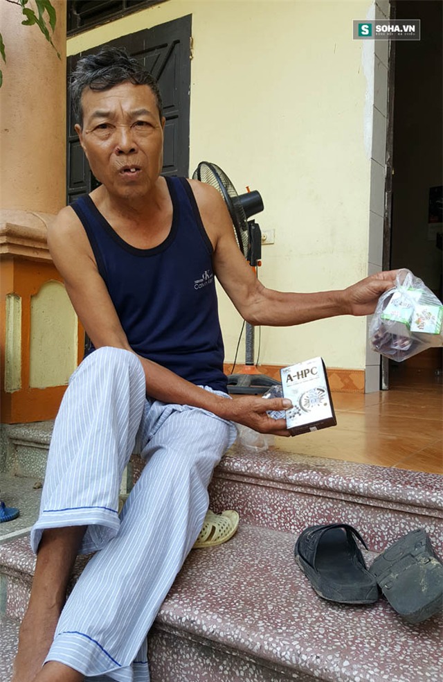 Lôi trong nhà ra một bọc thuốc tướng, ông Thơm bảo, giờ ông uống thuốc thay cơm.