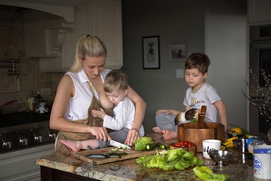 12. Làm mẹ là phải biết nấu ăn bằng một tay