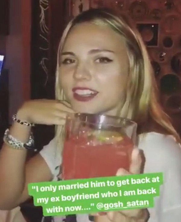 "Tôi làm đám cưới để giành lại bạn trai cũ, bây giờ anh ấy đã trở lại với tôi. Mọi thứ đã tốt đẹp trở lại", Irene nói với bạn bè khi ăn tối tại nhà hàng Sant Ambroeus ở New York. Không rõ lời nói của Irene có thật không nhưng đoạn video cho thấy những người bạn của cô đã hò reo như thể hưởng ứng nhiệt liệt.