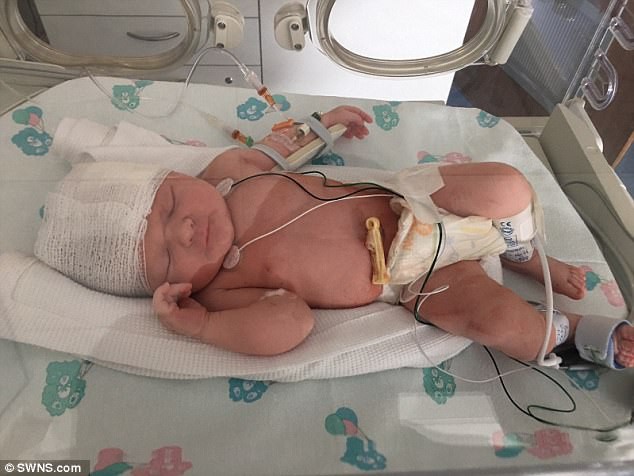 Các bác sĩ đã phải cắt bớt tóc của em bé để sơ cứu vết rách trên đầu Karmen.