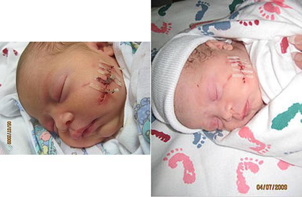 Một em bé khác ở Canada cũng bị một vết thương nặng ở trên trán do sự bất cẩn của bác sĩ.