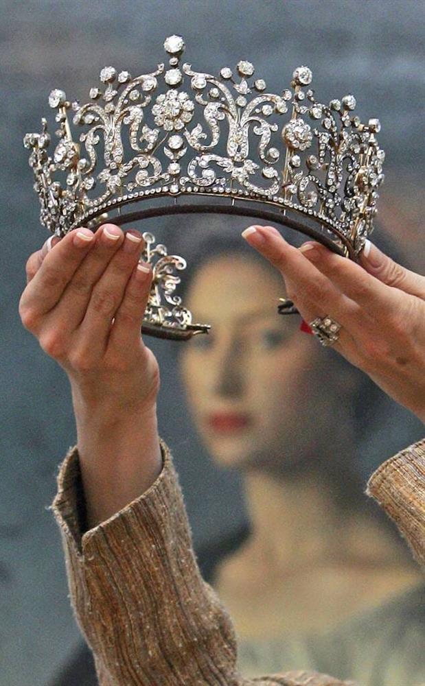 Đó là vương miện mang tên là Poltimore. Chủ nhân đầu tiên của báu vật này là Florence Brinsley Sheridan - Nam tước phu nhân Poltimore. Người phụ nữ đã đặt hãng Garrard chế tác chiếc vương miện vào những năm 1870, sau đó nó được truyền lại cho con cháu.